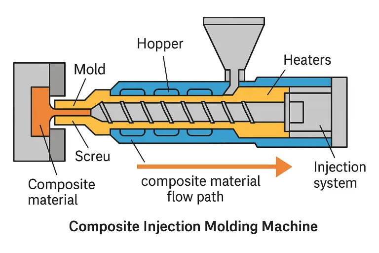 要掌握射出成型複合材料的訣竅,先得搞懂它的基本組成和運作原理。簡單來說,複合材料 = 基材樹脂 + 增強纖維。基材又分熱塑性和熱固性兩大類:熱塑性塑膠受熱會熔融可反覆塑形,而熱固性樹脂一旦加熱硬化就不能再溶回去,兩種各有千秋。增強材料方面,常見有玻璃纖維、碳纖維,甚至芳香族聚醯胺纖維(Kevlar),這些纖維埋進塑膠裡,就像鋼筋放進混凝土,讓材料變得更強更硬卻不會胖太多。射出成型前,工廠通常先把纖維和樹脂混合製成塑料顆粒或預成型料,長得有點像摻了顏色的小米粒。接著,把這些混合料丟進射出機的料管加熱,像在熬綜合玉米濃湯那樣把塑膠融化、把纖維攪拌均勻,然後用高壓嗤地一聲射進預先做好的模具裡。模具就好比模型餅乾的鐵盒子,裡頭挖出產品的形狀,熔融的含纖維塑膠填滿整個模腔,接著冷卻或固化定型:用熱塑性基材的就讓它冷卻變硬,用熱固性樹脂的則在模內加熱讓它徹底硬化。最後模具打開,頂出成品,一連串動作行雲流水。整個過程聽起來是不是很像全自動烤箱在烤麵包?調料、灌模、烤熟、出爐,節奏一氣呵成。